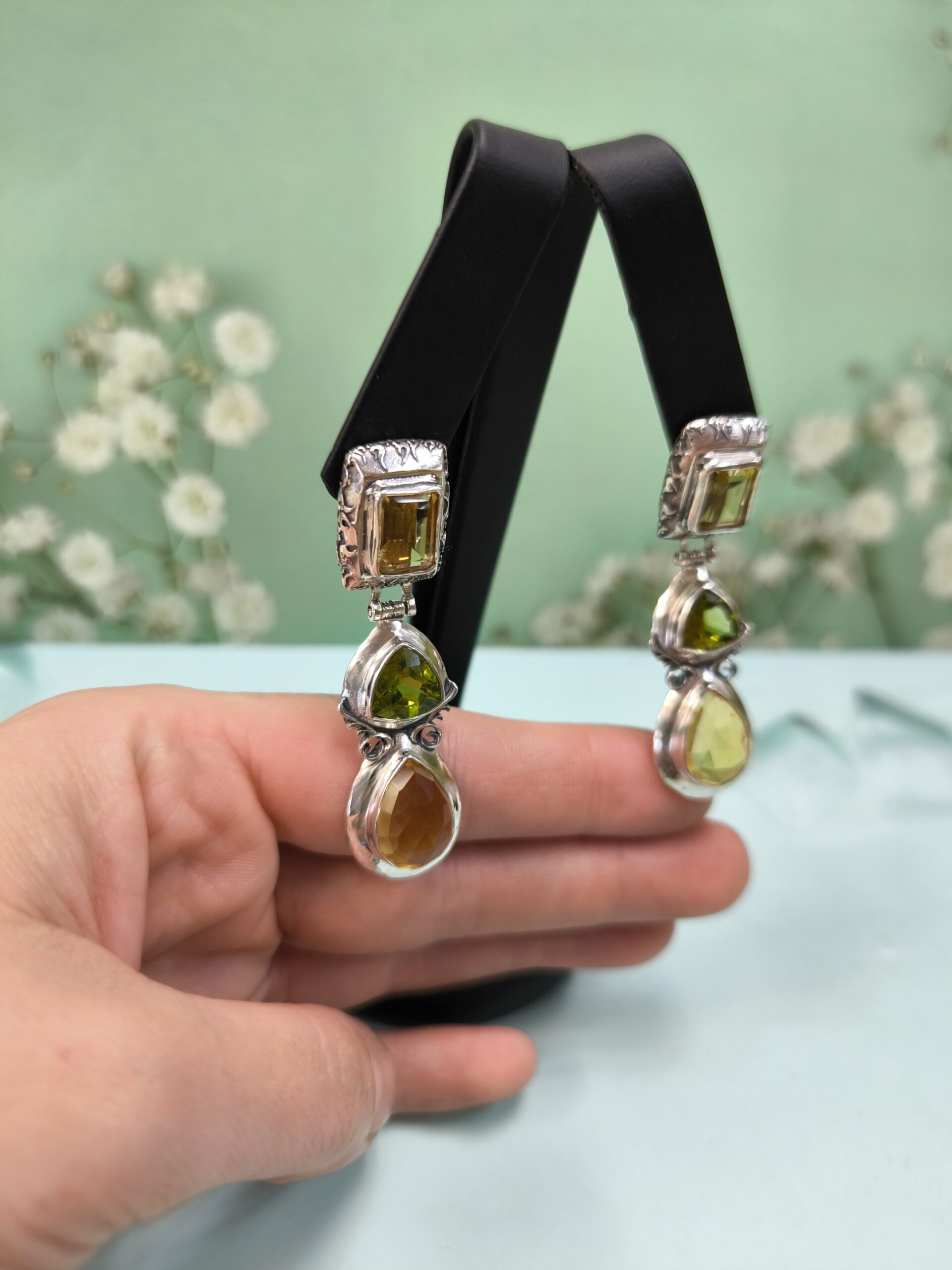 Цитрин и Хризолит. Вес одной серьги 8.50гр. Длина серьги 5,5см.