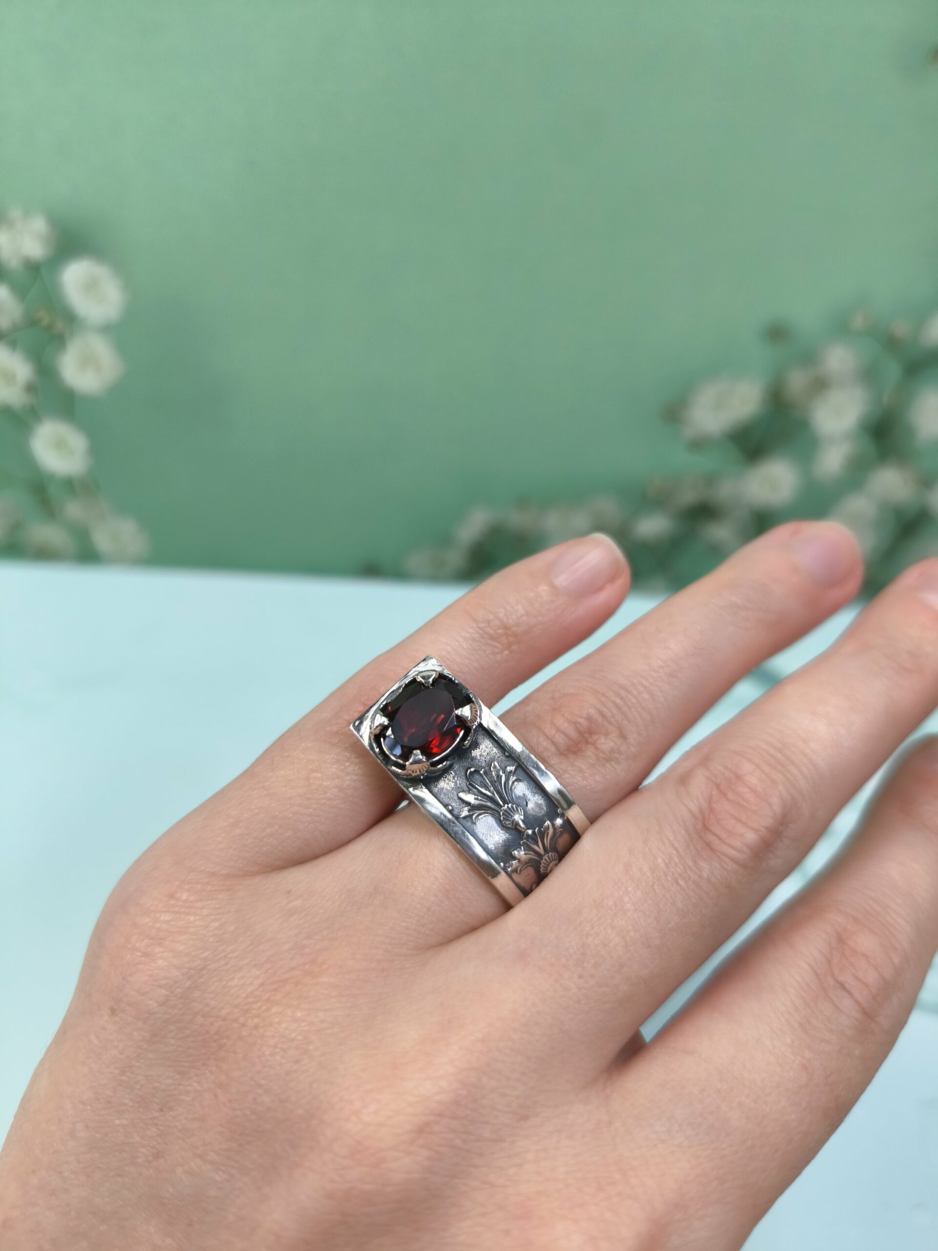 Гранат Альмандин. Разьемное кольцо