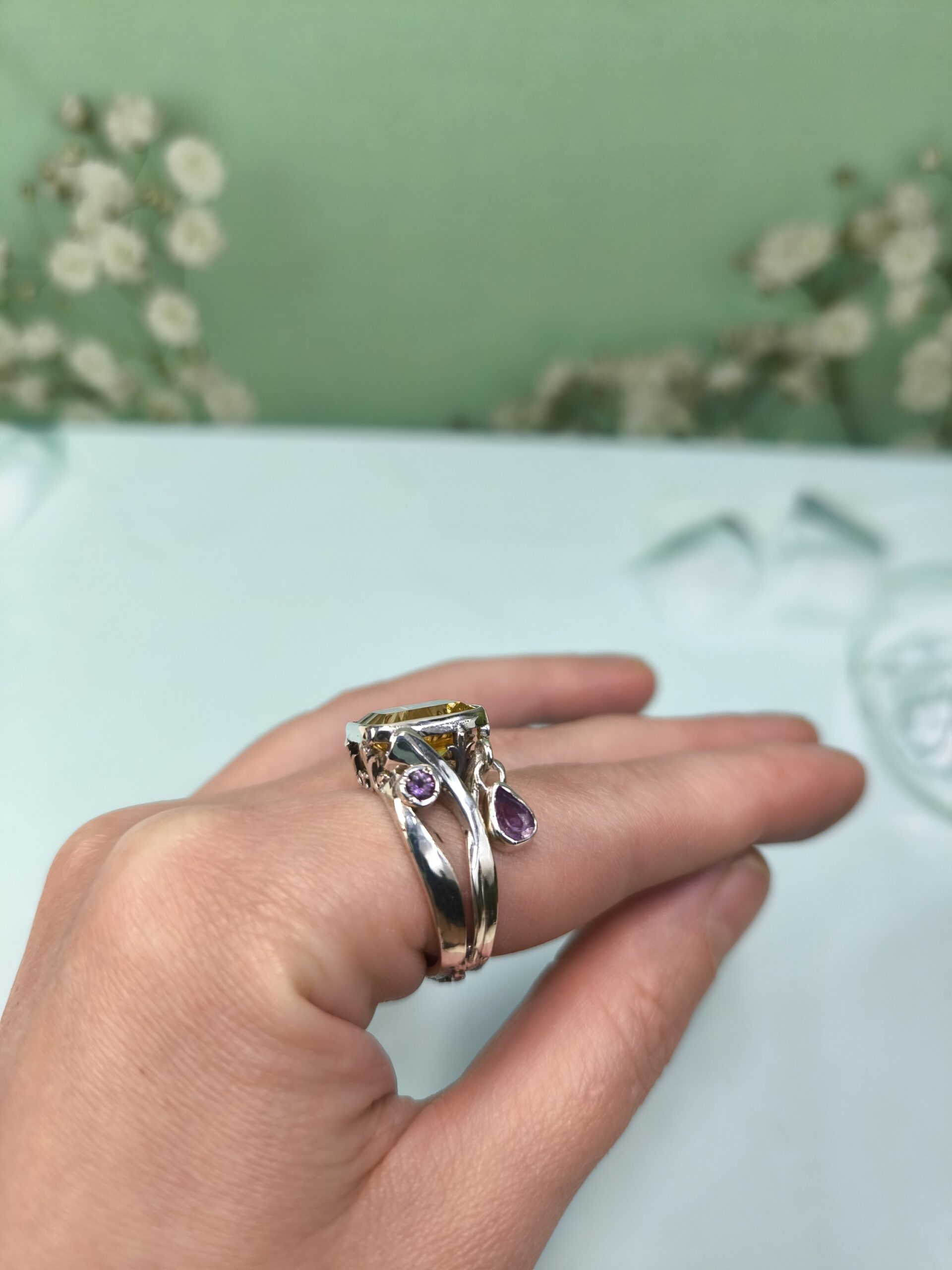 Цитрин и аметисты. Размер 19.5