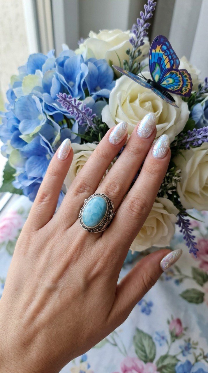Кольцо “Рыбка” Ларимар и топаз. . Изготовлено на заказ. Можно повторить эту модель с другими камнями. Пишите МАХ. Ватсап. Бип. Телеграм +79780390888