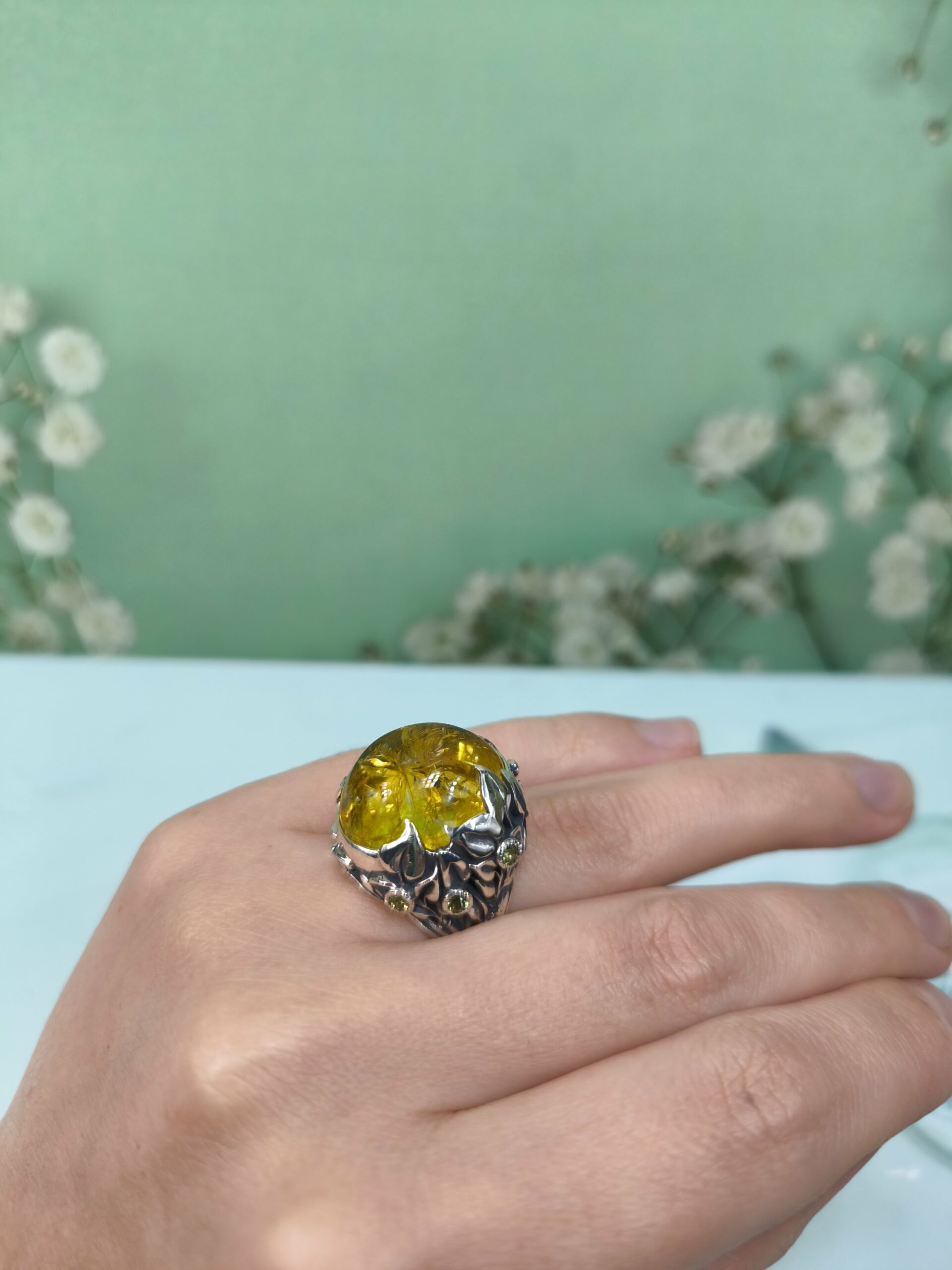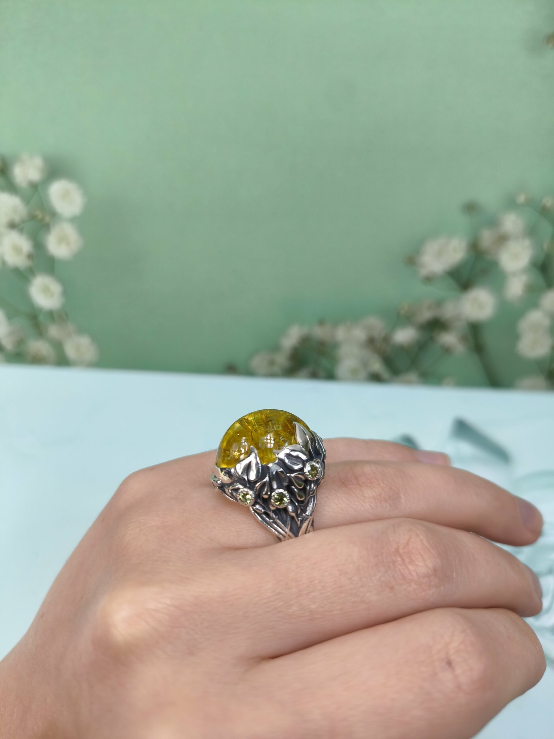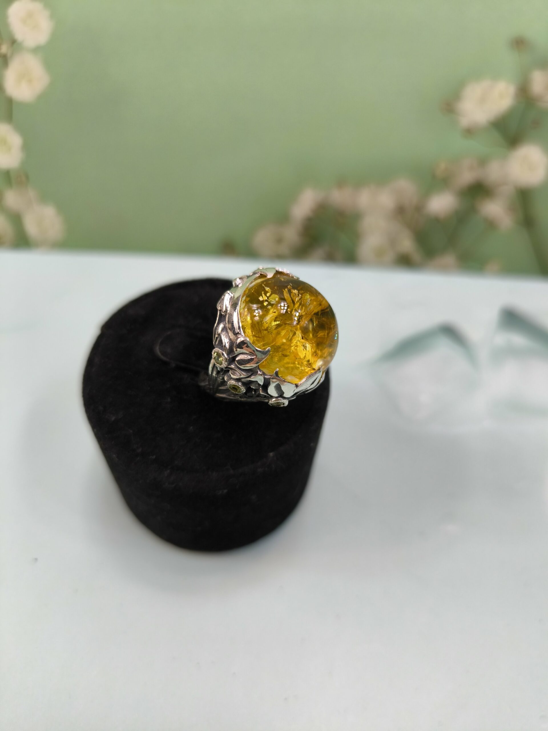 Цитрин и хризолит. Модель Веточки. Размер 17.5