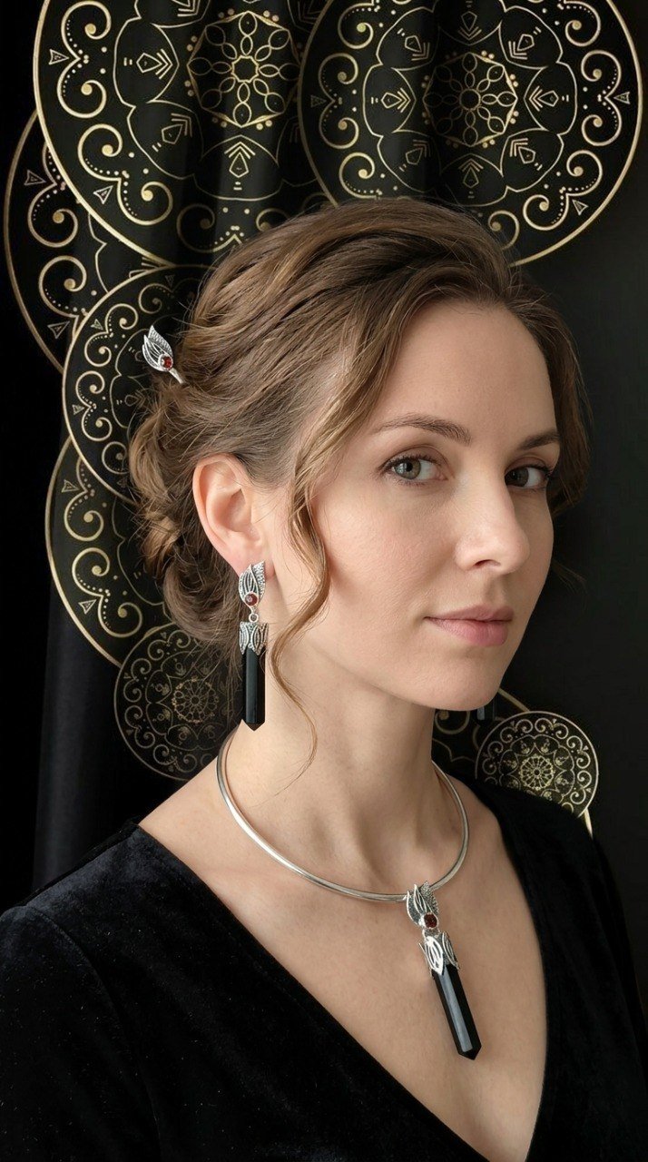 Комплект “Пламя в ночи” Турмалин шерл и гранат. Изготовлено на заказ. Можно повторить эту модель с другими камнями. Пишите МАХ. Ватсап. Бип. Телеграм +79780390888