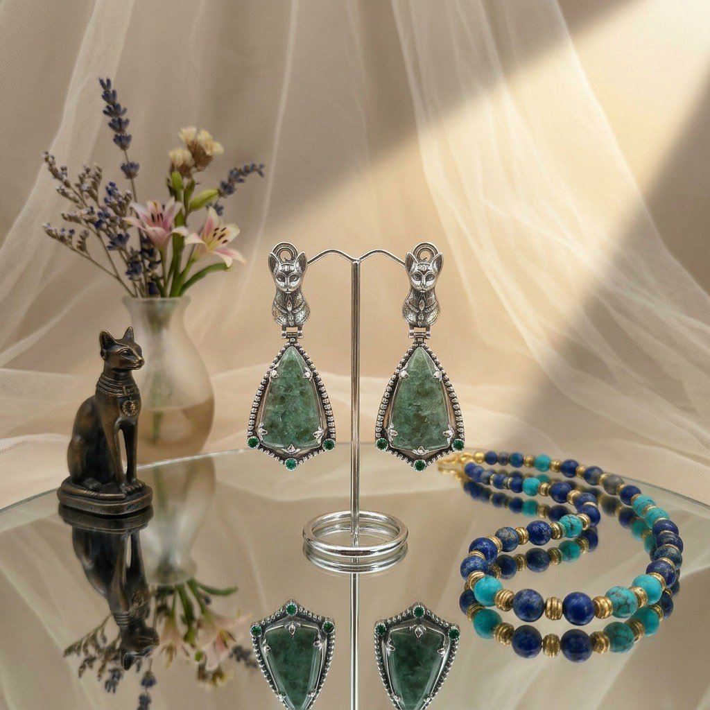 Серьги ” Египетские Кошечки” Авантюрин. Изготовлено на заказ. Можно повторить эту модель с другими камнями. Пишите МАХ. Ватсап. Бип. Телеграм +79780390888