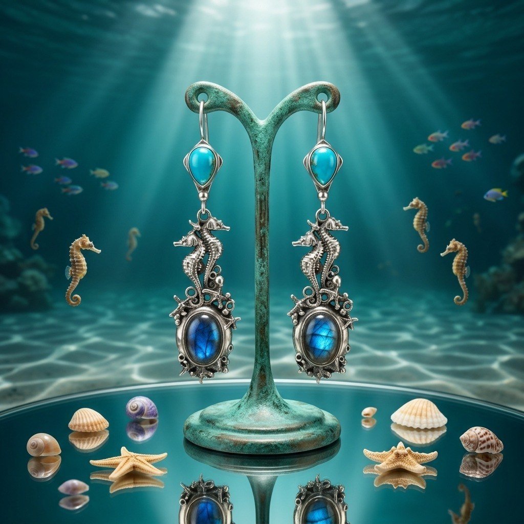 Серьги “Морские Коньки” Лабрадор и бирюза. Изготовлено на заказ. Можно повторить эту модель с другими камнями. Пишите МАХ. Ватсап. Бип. Телеграм +79780390888