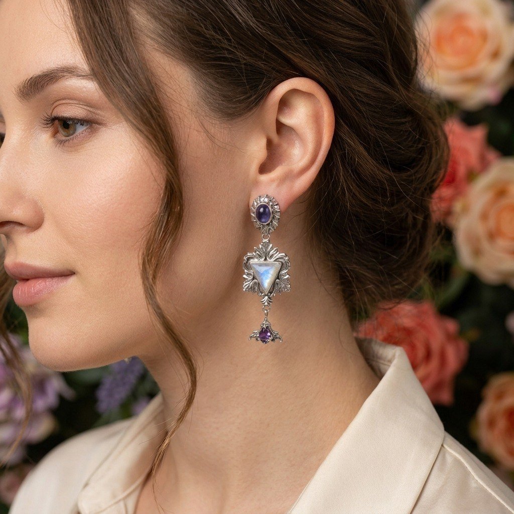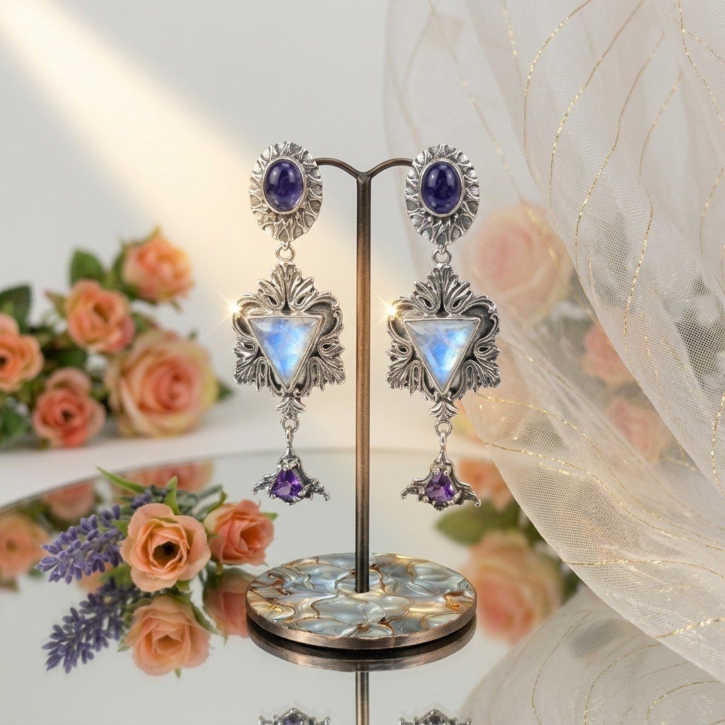Серьги “Нежность” Танзанит, лунный камень в огранке и аметист. Изготовлено на заказ. Можно повторить эту модель с другими камнями. Пишите МАХ. Ватсап. Бип. Телеграм +79780390888