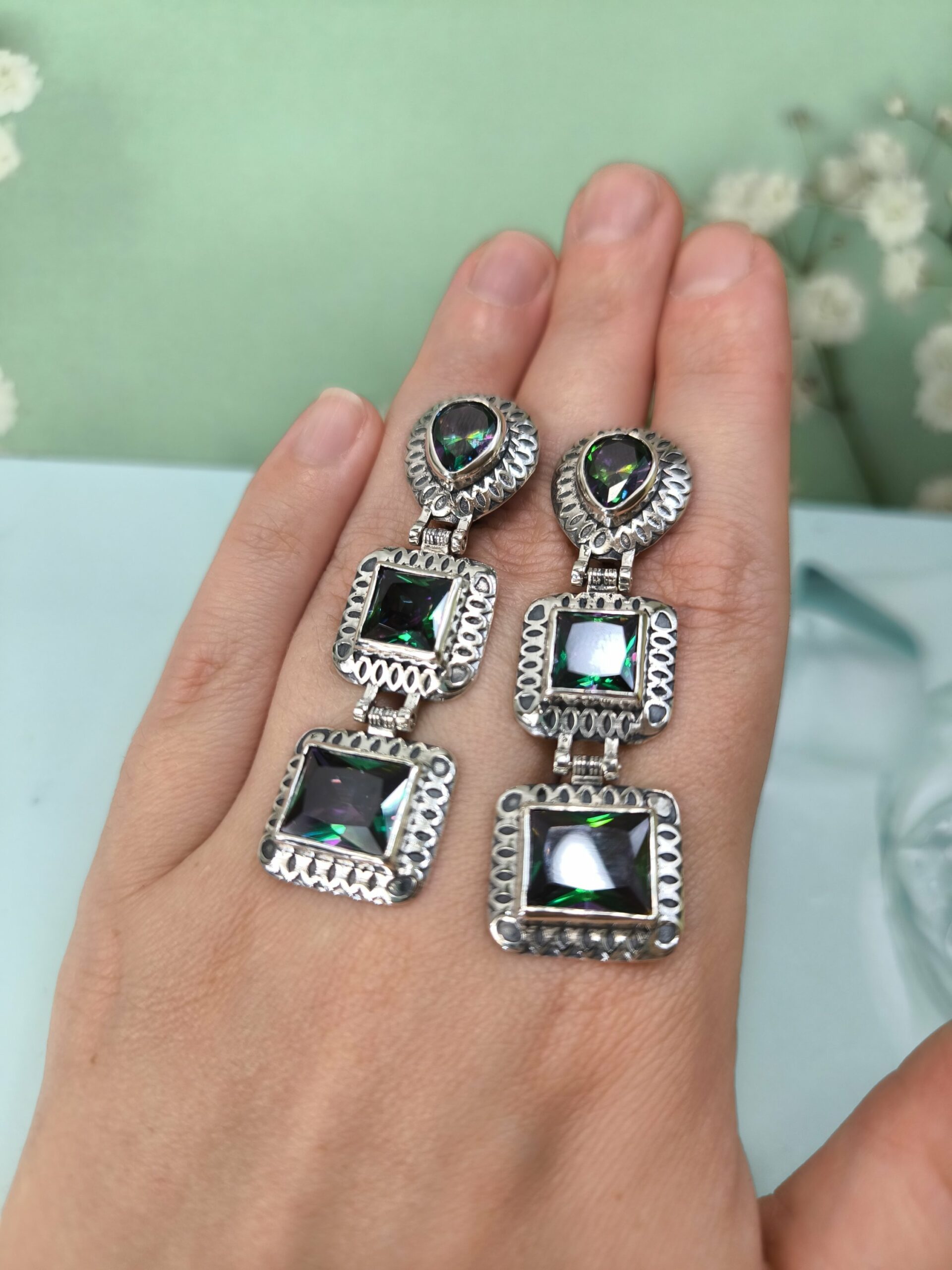 Мистик топаз. Длина Серьги 5,5см. Вес одной серьги 11,20гр.