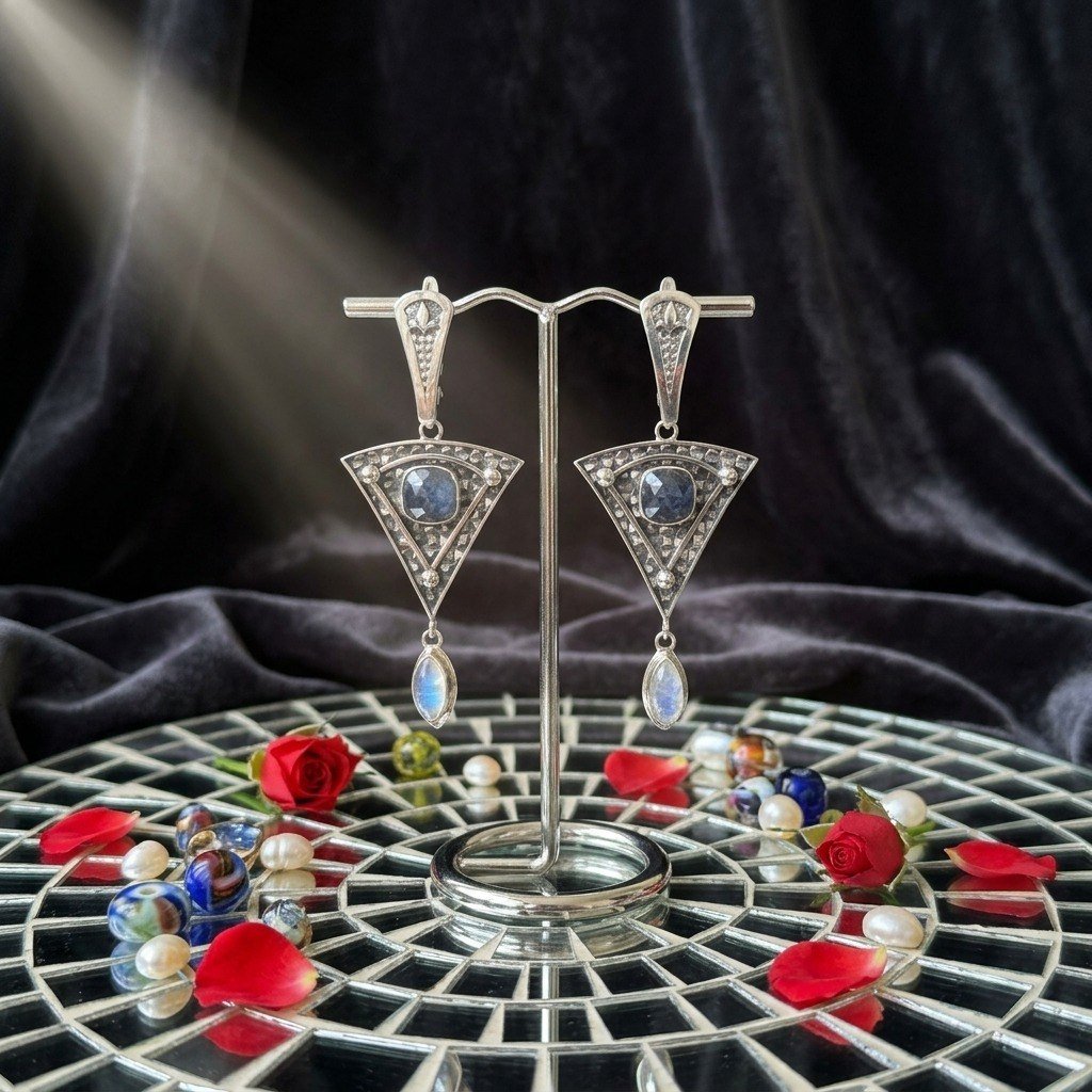 Серьги ” Веер” Сапфир и лунный камень .Изготовлено на заказ. Можно повторить эту модель с другими камнями. Пишите МАХ. Ватсап. Бип. Телеграм +79780390888