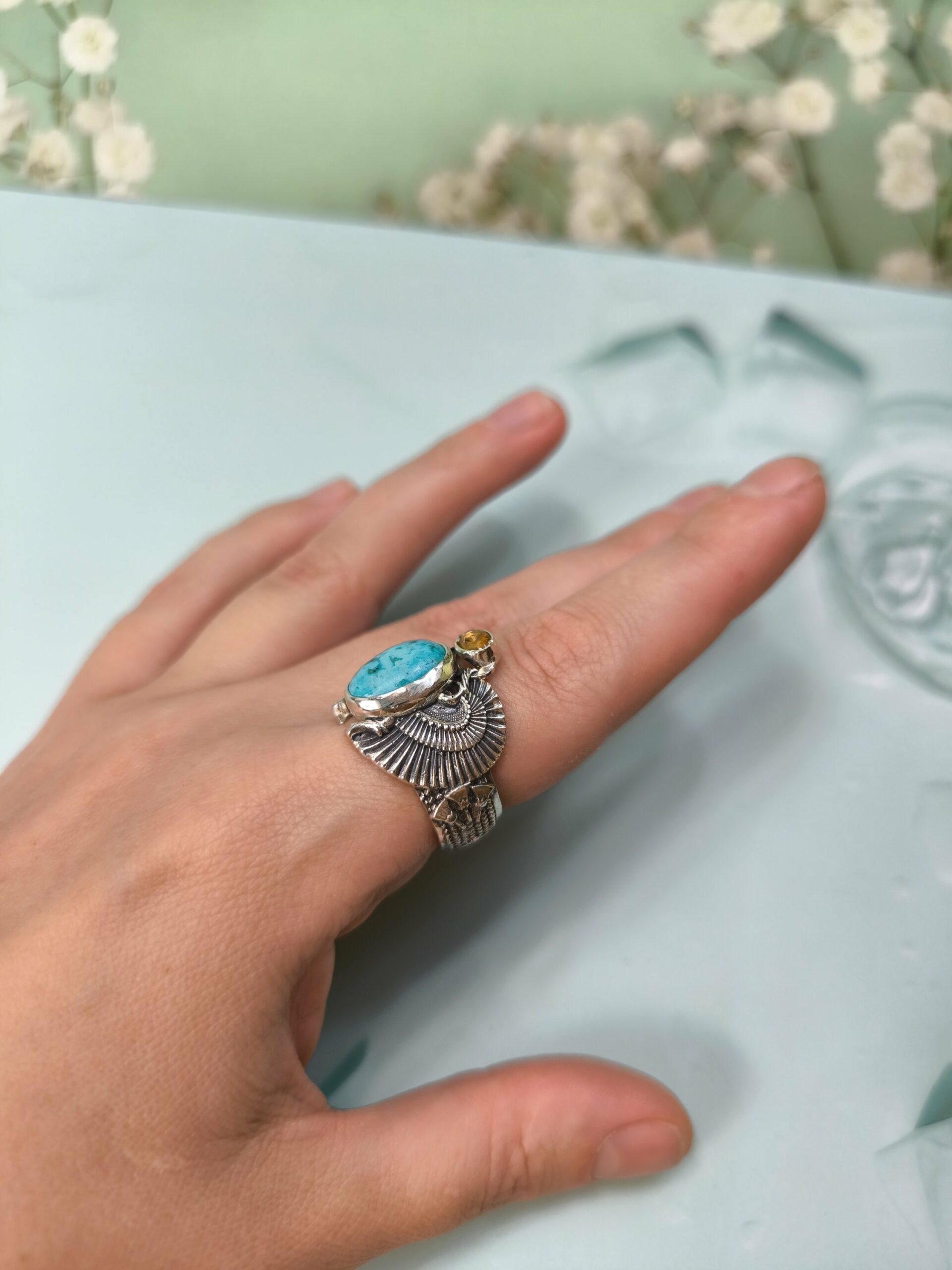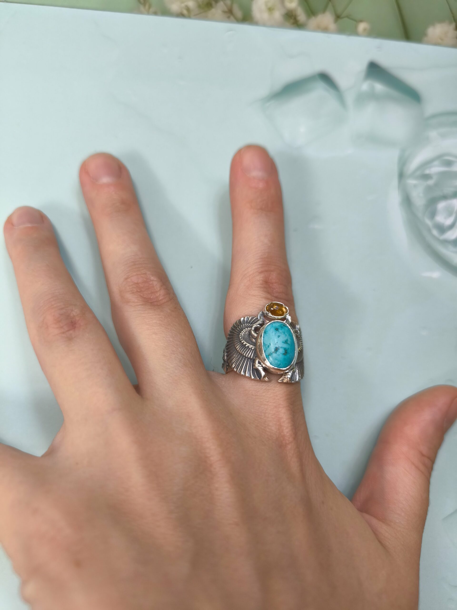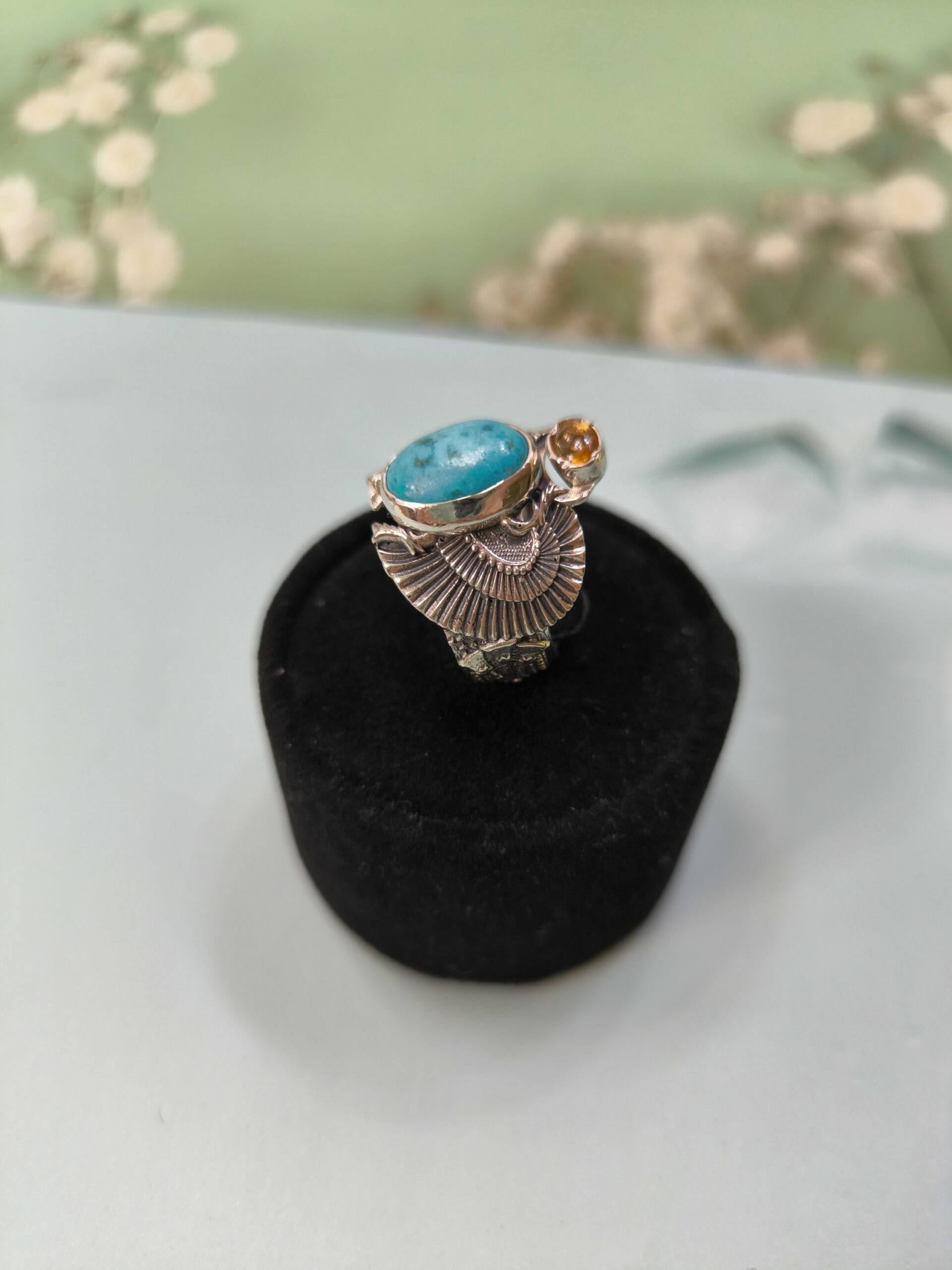 Модель Скарабей. Бирюза и турмалин. Размер 18.5