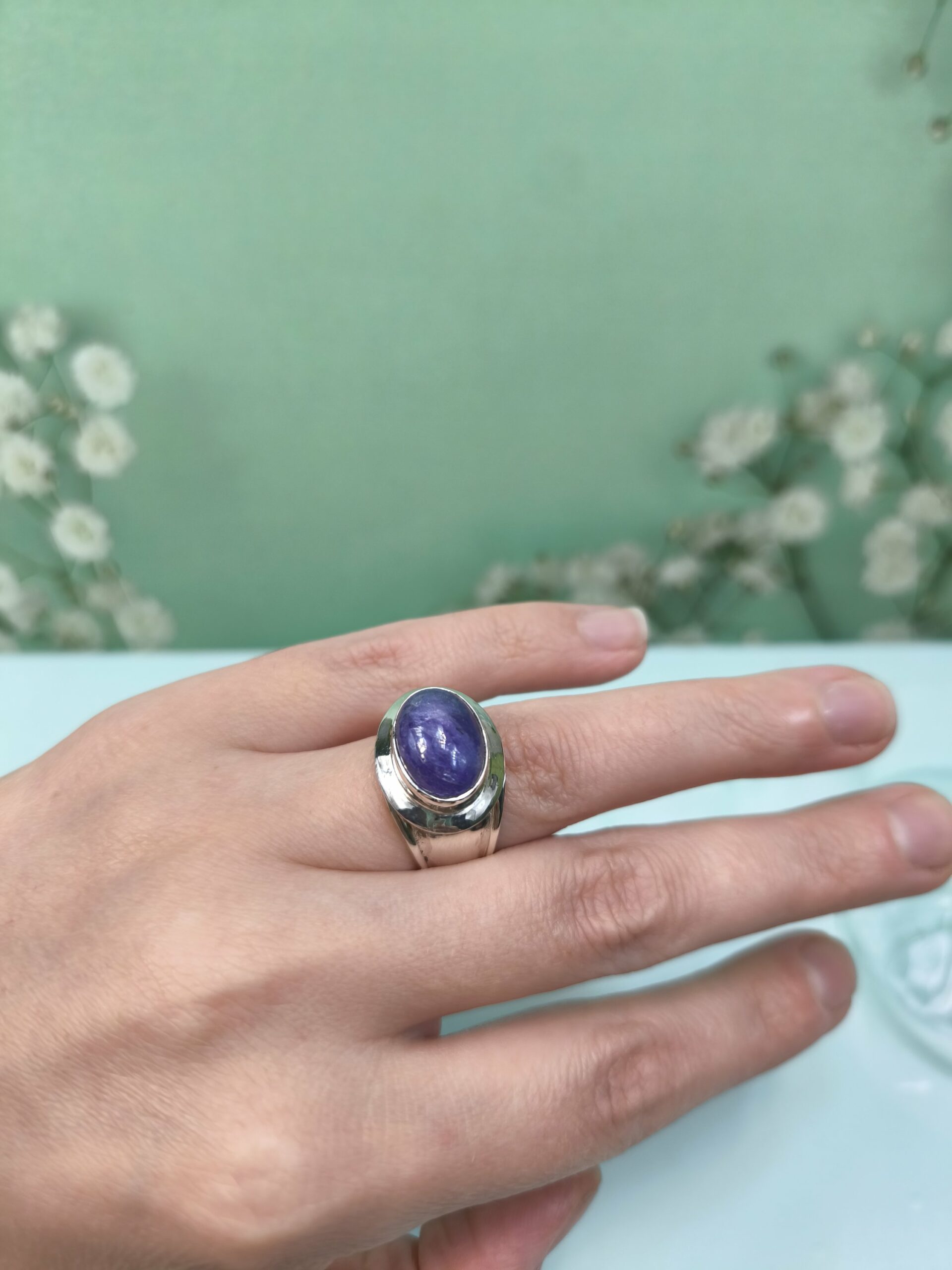 Танзанит натуральный. Размер камня 13*50 -10мм. Размер кольца 17